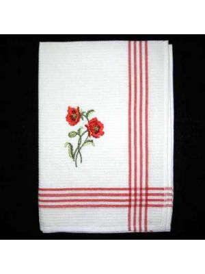 1. Red Poppy Embroidered Tea Towel